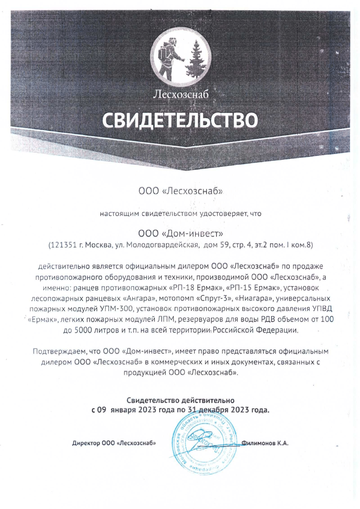 Компания ООО "Дом-инвест" является одним из Поставщиков пожарного оборудования для наших подразделений Иркутской области. Все поставки выполняются в срок и без претензий с нашей стороны.